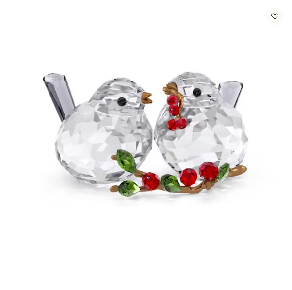 From the fantastical Idyllia garden, this adorable decoration is a celebration of love and nature. Featuring a total of 709 facets and touches of glossy bronze-lacquered metal, the creation reveals two crystallised birds enjoying a meal of bright red berries. The birds can be kept together or separated for your own unique display. Decoration object. Not a toy. Not suitable for children under 15.